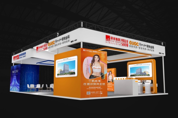 在顏色搭配上,展臺(tái)以黃白為主色調(diào),營造出簡(jiǎn)潔、明亮的氛圍,使整個(gè)空間顯得寬敞大氣,突出了展品和信息的呈現(xiàn)。同時(shí),大量運(yùn)用藍(lán)色作為輔助色,增強(qiáng)了科技感。藍(lán)色的線條、標(biāo)識(shí)等元素在白色背景上起到了良好的點(diǎn)綴和強(qiáng)調(diào)作用。此外,展示區(qū)的部分區(qū)域采用了橙色,為展臺(tái)增添了活力和亮色,避免了整體色彩搭配的單調(diào)感。