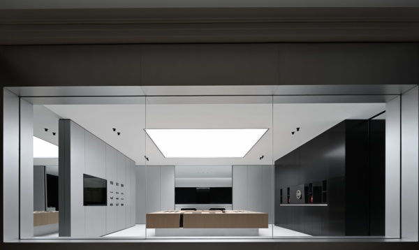 在空間構造上,我們嘗試用建筑的手法去表達,通過在空間中構建圍合狀墻體,將原空間自然分隔出不同的場域。入口的斜墻是一種退讓的姿態,也是功能的需求和視覺的引導,墻體的斜切為空間帶來了強烈的視覺感官。玄關的墻體起到對辦公區的遮擋作用,也承載了封閉影音室的功能需求;通過居中置入的影音空間巧妙地構建出會客區和辦公區兩個主要的功能空間。